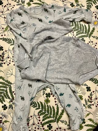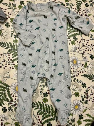 Set composto da body Ellepi tg 9 mesi pigiama Tzenis 6-9 mesi per neonato. - Body a manica lunga. - Pigiama intero con stampa di dinosauri. - Colore grigio chiaro.