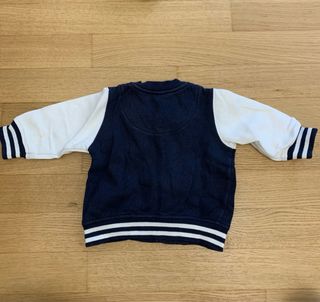 Cardigan sportivo per neonato, ideale per la mezza stagione. - Colore blu navy con maniche bianche. - Dettaglio lettera N sul petto. - Polsini e fondo a costine con strisce bianche.
