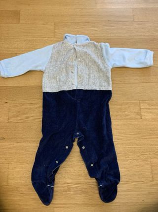 Tuta intera per neonato con un simpatico orsetto applicato sul davanti. Realizzata in morbido tessuto. - Applicazione orsetto con dettagli ricamati. - Chiusura con bottoni a pressione. - Colore blu mélange. taglia 3 mesi cm62 bellissima
