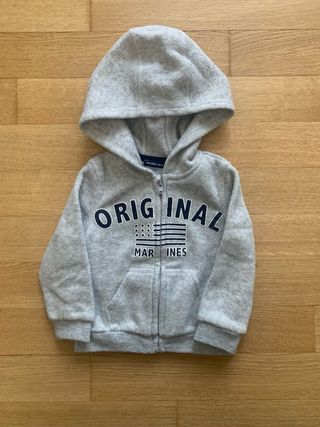 Felpa con cappuccio Original Marines per neonato. - Taglia 6/9 mesi. - Colore grigio melange. - Chiusura con zip frontale. - Tasca a marsupio. - Stampa Original Marines sul petto.