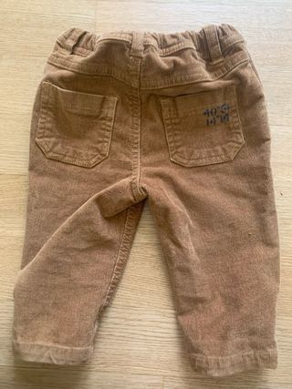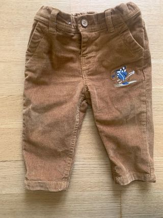 Pantaloni in velluto a coste per neonato, taglia 6/9 mesi. - Colore marrone. - Applicazione ricamata di uno sciatore sul lato. - Vita elasticizzata per un maggiore comfort.