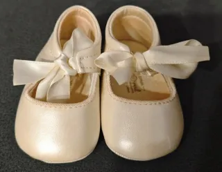 Splendide scarpe per neonati del marchio Mayoral, perfette per occasioni speciali. Senza etichetta, ma mai usate. Colore avorio satinato. Dettaglio con fiocco in raso. Taglia 15.