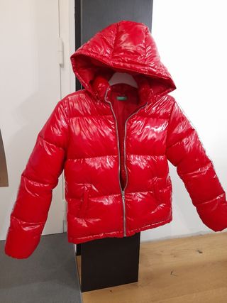 Giubbotto Benetton bambina tg.10 anni, 150 cm, colore rosso fuoco con inserti sulle maniche color argento; il cappuccio è removibile; come nuovo usato poco per cambio taglia.