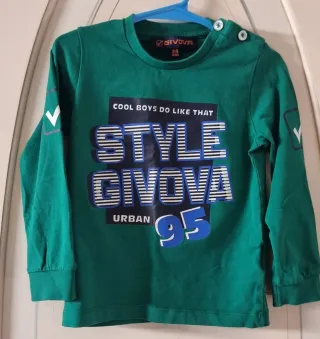 Maglietta a manica lunga di colore verde per bambino. - Logo GIVOVA sul davanti. - Scritta STYLE GIVOVA con dettagli a righe. - Grafica URBAN 95 sul davanti. - Logo GIVOVA sulle maniche.