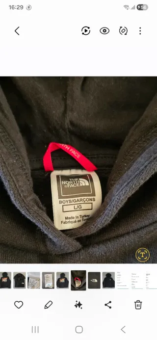 Felpa con cappuccio The North Face per bambino/a. - Logo The North Face sul petto. - Tessuto in felpa. Felpa pesante con cappuccio in ottime condizioni, non presenta difetti nè imperfezioni. È una taglia L/G, orientativamente per bambino/a 10/11 anni, per maggiore sicurezza fornisco misure in cm: - larghezza spalle 36 cm -larghezza da ascella a ascella 42 cm - lunghezza totale 51 cm - lunghezza manica 50 cm