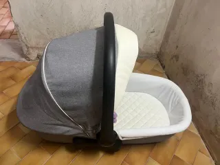 Set trio per passeggino e carrozzina. - Tessuto grigio mélange. - Interno bianco trapuntato. - Manico nero.