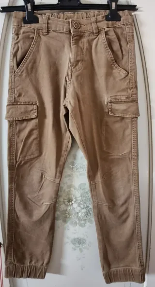 Pantaloni cargo in cotone per ragazzo, colore bege. - Tasche laterali applicate. - Vita elasticizzata con coulisse. - Fondo gamba elasticizzato.