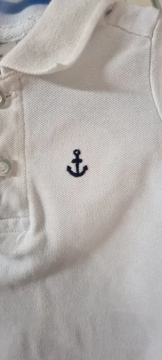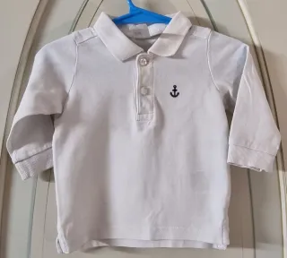 Polo a manica lunga per bambino, di colore bianco. - Collo a polo con chiusura a bottoni. - Piccolo ricamo di un'ancora sul petto.