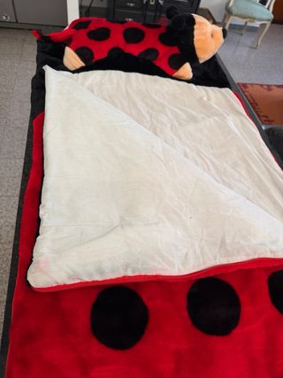 Morbido sacco nanna a forma di coccinella, completo di cuscino integrato. - Design a tema coccinella con pois neri. - Cuscino a forma di testa di coccinella. - Piedini imbottiti. - Materiale soffice e confortevole.
