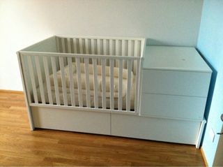 Vendo splendido lettino evolutivo multifunzione • Fase Baby (0-3 anni): Lettino 70x140 cm con cassettiera a 2 cassetti, zona fasciatoio superiore, modulo libreria e 2 grandi cassettoni contenitori sotto il letto. • Fase Kid (3-5 anni): Rimuovendo la sponda (inclusa), diventa un lettino basso 70x140 cm per favorire l'autonomia. • Fase Junior (+5 anni): Il sistema si smonta e diventa una cameretta completa composta da: 1. Letto singolo (per materasso 90x200 cm). 2. Comodino a 2 cassetti. Dettagli importanti: • Non inclusi: Materassi, cuscini paracolpi per le sponde e accessori tessili • Manca una traversa della rete.
