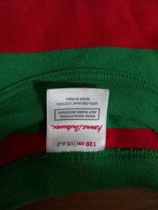 Completo per neonato marca IDo, taglia 3-6 mesi. - Maglia a maniche lunghe a righe grigie, blu e rosse. - Colletto bianco con chiusura a bottoni. - Pantaloni rossi con elastico in vita.