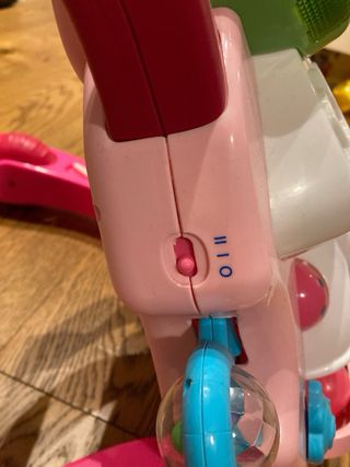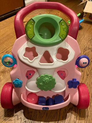 Centro attività Chicco Primi Passi, ideale per i più piccoli. Colore rosa vivace con dettagli colorati. Primi passi in musica della chicco: aiuta il bambino a stare in piedi e a muovere i primi passi in sicurezza: basta appoggiarsi, camminare e subito il gioco comincia a suonare un twist che si interrompe appena il bambino si ferma, invogliandolo così a camminare ancora. E’ anche un centro attività con giochi , luci ed effetti sonori.