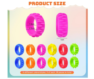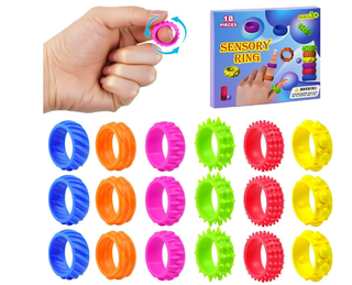 Set di 18 anelli sensoriali in silicone, ideali per alleviare lo stress e stimolare i sensi.Vendo 18 anelli in gomma giocattolo antistress in silicone colorati . Nuovi con scatola. 18 pezzi anelli in silicone 6 colori e forme esterne diverse . Gioco fidget toys in silicone antistress. Morbidi fatti con materiali di qualità e sicuri . - Materiale: Silicone morbido e resistente. - Colori assortiti: Blu, arancione, rosa, verde, rosso e giallo. - Texture diverse per una stimolazione tattile unica.