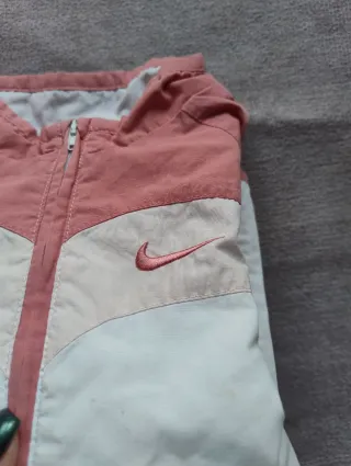 Giacchino Nike, perfetto per la mezza stagione Questo è un bellissimo giubbino leggero (tipo windbreaker o giacca a vento) Nike della linea baby/neonato. Il design a blocchi di colore è molto sportivo e i colori rosa pastello lo rendono perfetto per una bambina. ✨ Dettagli Chiave e Condizioni Marca: Nike (Swoosh ricamato sul petto, grande logo "nike" sul retro). Tipo: Giacca a vento/Windbreaker/Giubbino leggero (non imbottito). Taglia: 12-18 mesi (corrispondente a 80-86 cm). Colori: Rosa antico/corallo, Bianco Panna e Beige/Rosa molto chiaro. ⚠️Logo sul Retro: Il grande logo "nike" stampato sul retro presenta segni di usura.