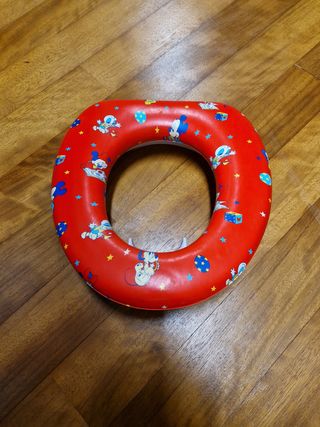 Riduttore WC x Bambini Disney Rosso, con disegnato Topolino, Minnie, Paperino e Pluto. Adattatore water universale e unisex sia per maschio che per femminuccia. Materiale sotto in plastica e invece il sedile è imbottito e in tessuto plastificato impermeabile che consente una facile pulizia. Adatto ai bambini a partire dai 10 mesi, grazie a questo riduttore dalla forma confortevole e dai bordi arrotondati impareranno più facilmente ad usare il water.