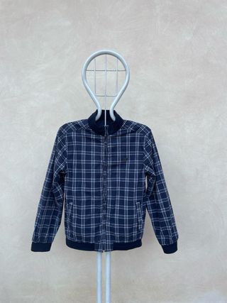 Giubbino Nukatavake double face bambino, blu scuro e blu a quadri, in perfette condizioni, usato una volta, pari al nuovo.