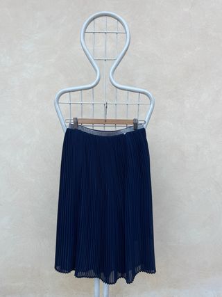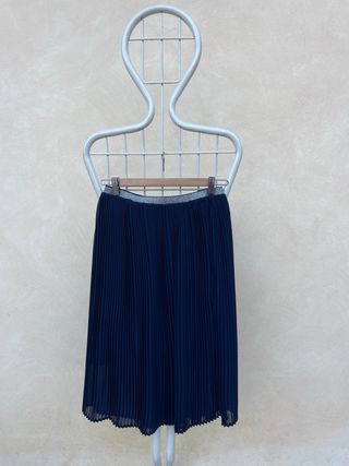 Gonna elegante da bambina, perfetta per occasioni speciali. - Tessuto blu navy. - Vita con dettagli glitter. - Gonna a pieghe. - Orlo con lavorazione a zig-zag.