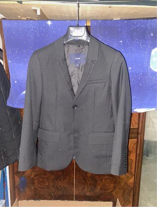 Elegante giacca per bambino marca KIABI, taglia 10 anni. - Colore nero. - Chiusura a due bottoni. - Tasche frontali. - Fodera interna. Giacca elegante per bambino dal taglio sartoriale, con bottoni decorativi che donano un aspetto raffinato. Realizzata con materiali morbidi, traspiranti e caldi, offre comfort e protezione. Perfetta per cerimonie, feste e occasioni speciali, aggiunge un tocco di classe al look del piccolo. Misure: spalle 34cm, altezza 50cm, petto 36cm.