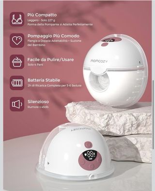 Set di due tiralatte elettrici indossabili Momcozy. Con scatola originale. - Design compatto e discreto. - Facili da indossare e utilizzare. - Custodia inclusa per il trasporto.