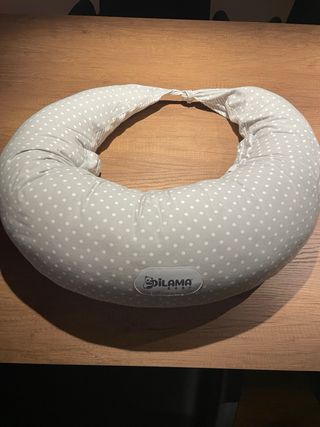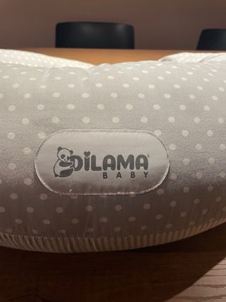 Cuscino per allattamento DILAMABABY con fantasia a pois. Con scatola originale. Usato solo ultimo mese di gravidanza -sfoderabile e lavabile facilmente - Fantasia a pois bianchi su sfondo grigio. - Etichetta con logo DILAMA BABY e orsetto panda. Su amazon a 40 euro