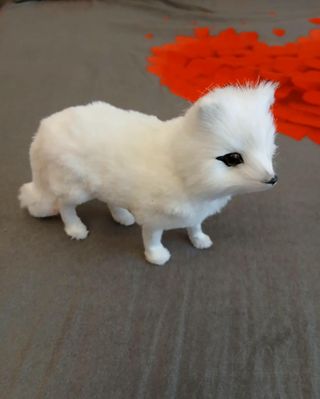 Un morbido peluche a forma di volpe bianca, perfetto per decorare o per giocare.14x16 cm Arredamento casa - Materiale soffice e di alta qualità. - Dettagli curati negli occhi e nel muso.