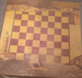 Scacchiera grande in legno con design di paesaggio marino e faro. Nella sua confezione originale non aperta. Non aperta, nella sua confezione originale. Design di Cantabria.