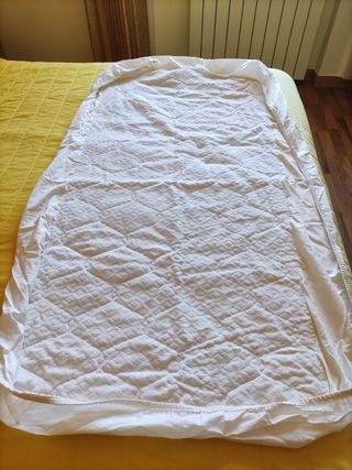 Coprimaterasso per culla, dimensioni 60 x 124 con angoli. Imbottito come da foto.