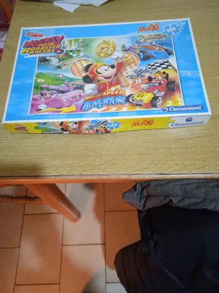 Puzzle Maxi Clementoni da 100 pezzi con i personaggi di Topolino e i piloti. - Personaggi: Topolino, Minnie, Paperino, Paperina. - Tema: Avventura ad alta velocità. - Adatto ai bambini.