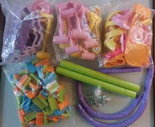 Divertente parco acquatico giocattolo con scivoli e accessori. - Include diapositiva gialla e viola. - Base rossa e gialla. - Ombrello verde e giallo - Sedia viola. Manca una porta scorrevole Buono con un polso Il prezzo è negoziabile