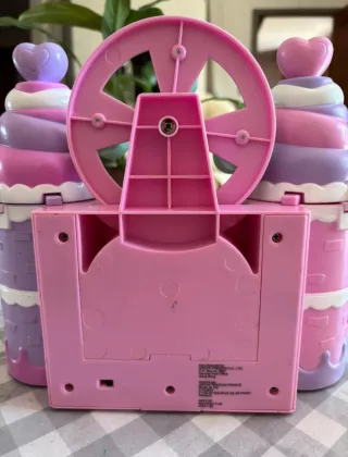 Questo è un castello giocattolo di Jewelpet, con un design colorato e divertente. Include solo il castello, non gli animali o i loro ciondoli. Presenta accessori come scivoli e una ruota panoramica. Il castello si apre per rivelare diverse aree di gioco. Le torri del castello sono rotte, come si vede nell'ultima immagine, ma rimangono unite. Puoi anche giocare con altri pupazzi e giocattoli come un petshop.