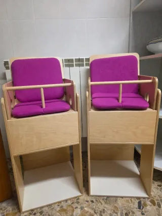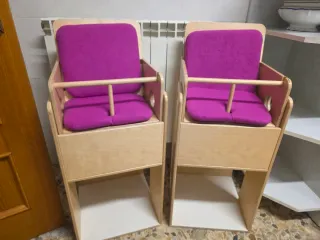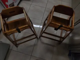 Se venden dos tronas de madera para niños. Son robustas y seguras. - Fabricadas en madera. - Incluyen cinturón de seguridad.