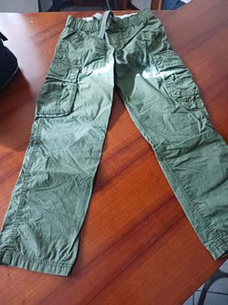 Pantaloni cargo in cotone verde, marca H&M. - Vita elasticizzata con coulisse. - Tasche laterali applicate. - Dettagli con doppie cuciture.