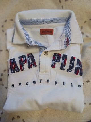 Polo da bambino marca Napapijri, colore bianco. - Stampa NAPAPIJRI sul petto. - Scritta geographic in basso. - Collo a polo con bottoni. - Dettagli a righe sul colletto e sui polsini.