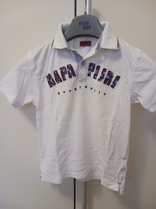Polo Napapijri originale per bambino, taglia 6 anni. Colore blu. - Logo Napapijri sul petto. - Dettagli con strisce bianche sulle maniche e sul colletto. - Chiusura con bottoni.