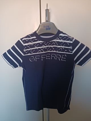 T-shirt GF Ferrè di colore blu scuro con stampe bianche. - Logo GF Ferrè sul davanti. - Strisce bianche sulle maniche e sul petto. - Dettagli bianchi sui fianchi.