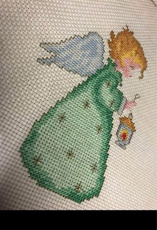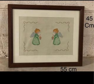 Quadro cornice arte povera, punto croce, ricamo, fatto a mano, rappresenta due angioletti … Ideale per nascita, Cameretta bambini .. Bel lavoro finemente fatto a Mano …. misure in foto