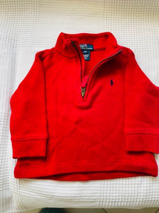 Vendo Maglioncino Ralph Lauren originale, colore rosso vivace, taglia 9 mesi. - Logo Ralph Lauren ricamato sul petto. - Collo alto con zip. - Polsini e fondo a costine. Molto morbido e caldo. Indossato 2 volte. Praticamente nuovo.