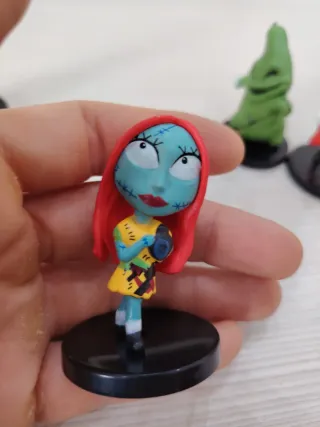 Set di personaggi dal film Nightmare Before Christmas. - Include Jack Skeletron, Sally, Oogie Boogie e Babbo Natale. - Ideali per collezionisti o fan del film.