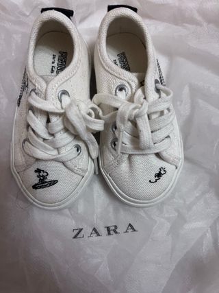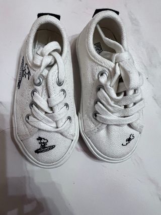 Vendo scarpe sportive Zara della linea Peanuts, numero 19. Sono bianche, in tela, con lacci e decorazioni ricamate. Perfette per un look casual e comodo. - Sneakers bianche - Numero 19 - In tela - Con lacci - Decorazioni ricamate