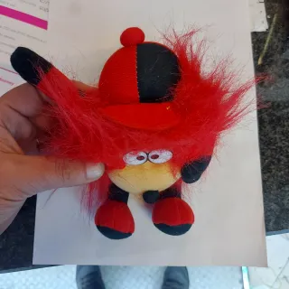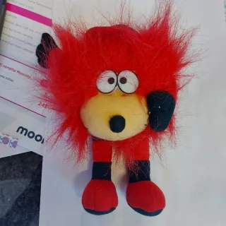 Peluche di colore rosso con dettagli neri e gialli. - Capelli rossi e folti. - Occhi grandi e rotondi. - Dettagli neri sulle zampe e sulle orecchie.