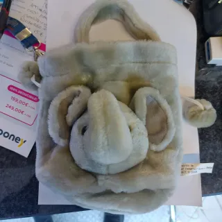 Simpatica borsetta a forma di elefantino in morbido peluche. - Materiale: peluche. - Design: elefantino con orecchie e proboscide. - Chiusura con cordoncino. - Pompon decorativo.
