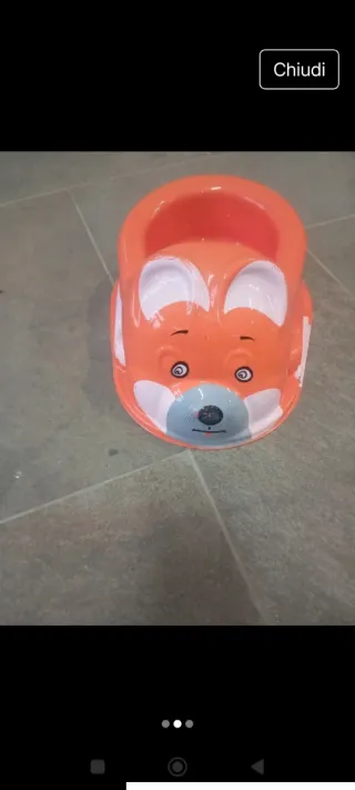 Vasino in plastica rigida con simpatico design a orsetto. - Colore arancione vivace. - Materiale plastico resistente. - Forma ergonomica per il comfort del bambino.