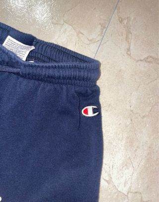 Pantalone della tuta per bambino, colore blu navy, firmato Champion. - Logo Champion sul lato. - Vita elasticizzata con coulisse. - Polsini alla caviglia.