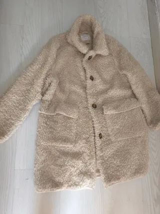 Caldo cappotto Zara per bambini, taglia 12 anni, color panna. - Tessuto morbido effetto peluche. - Chiusura con bottoni. - Due tasche frontali applicate.