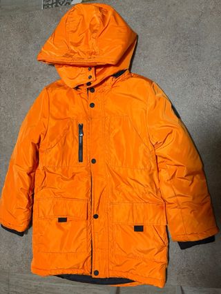 Giaccone da neve di colore arancione brillante, perfetto per le giornate fredde. - Cappuccio integrato. - Chiusura con zip e bottoni. - Tasche frontali con patta. - Dettagli neri Original Marines Non presenta alcun segno di usura. Come nuovo