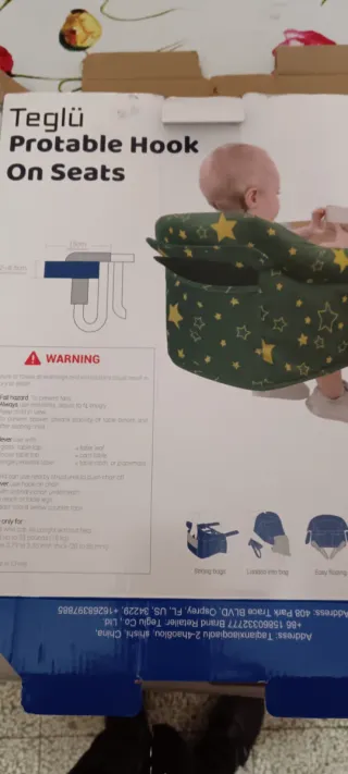 Seggiolino da tavolo portatile per bambini. - Adatto per tavoli con spessore da 0.79 a 3.30 pollici (20-85mm). - Portata massima fino a 30 libbre (15 kg). - Design pieghevole per un facile trasporto.