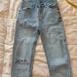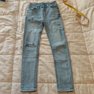 Jeans a vita alta per ragazza, taglia S. Un capo versatile e alla moda. - Vestibilità skinny. - Effetto stone washed. - Dettagli strappati.