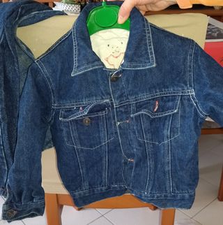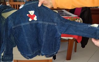 Giacca in denim per bambino, perfetta per completare ogni outfit. Giacchetta in denim jeans foderata( un po' sciupata) per bambino. la misura non è più visibile per misure e informazioni contattatemi - Tessuto denim resistente. - Chiusura con bottoni. - Tasche sul petto. - Dettagli con cuciture a contrasto.