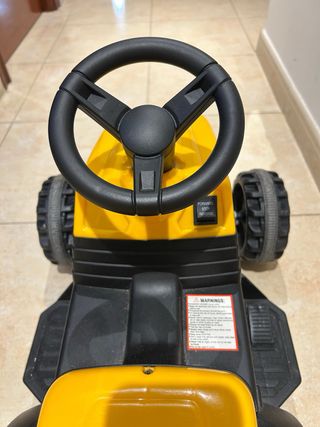 Trattore elettrico di colore giallo per bambini. Progettato per il divertimento all'aperto. - Volante nero. - Ruote nere con battistrada. - In perfette condizioni. Poco uso.