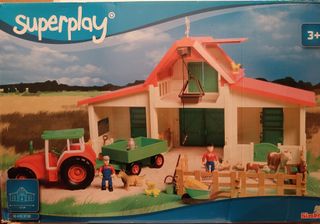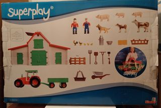 Set di gioco della fattoria Superplay per bambini. Include fattoria, trattore, rimorchio e figure di animali e persone. Ideale per promuovere il gioco immaginativo.